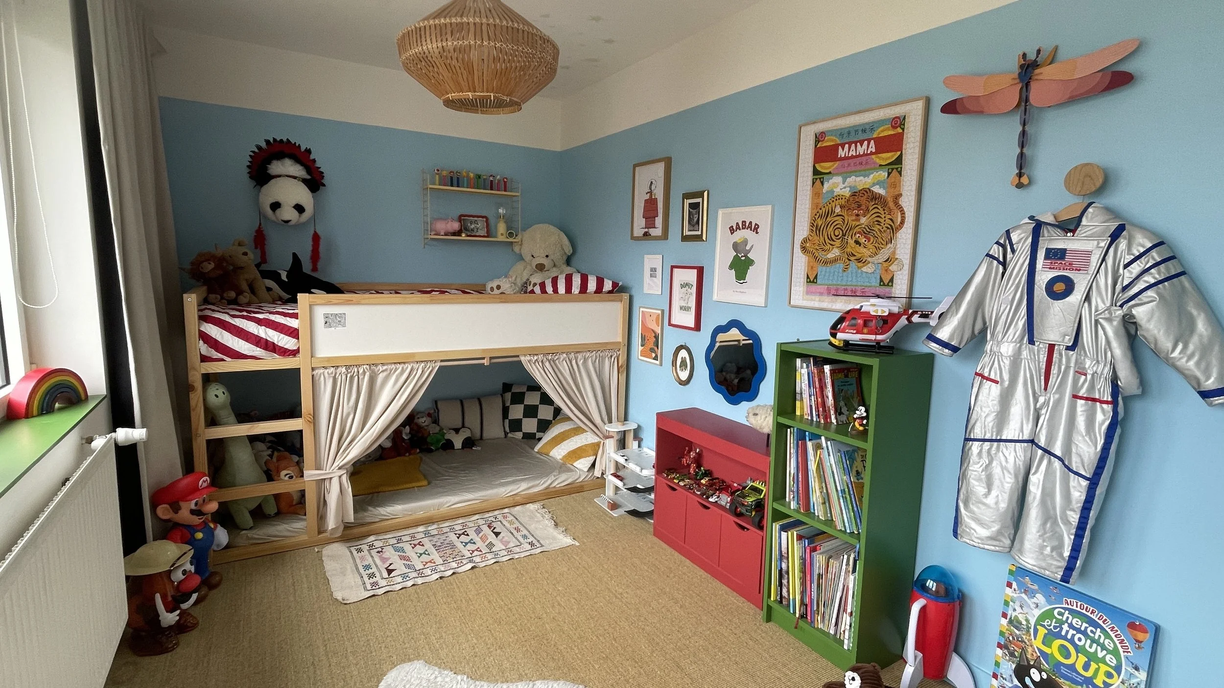Répartie sur trois niveaux, la maison propose des ambiances variées : un rez-de-chaussée convivial et design, un étage aux inspirations enfantines, et une suite parentale nichée sous les combles, pensée comme un refuge paisible.